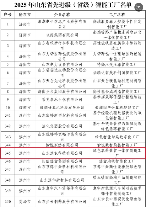 ■2025-07-15 濱農(nóng)科技獲評2025年山東省先進級(省級)智能工廠