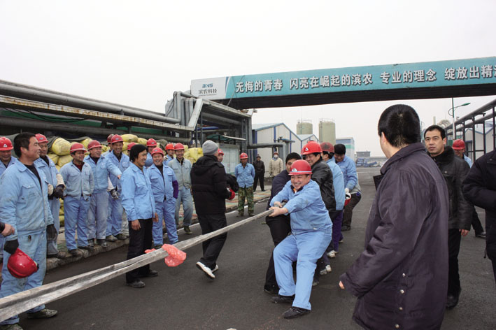 2010年 2月7日上午,二分廠懸浮劑車間舉辦了2010年第一屆車間趣味運動會,二分廠廠長鄭軍做了賽前講話。比賽分為三個環(huán)節(jié):第一項拔河比賽,體現(xiàn)團隊精神。第二項綁腿跑比賽,體現(xiàn)協(xié)作能力和技巧。第三項滾大桶比賽,考驗賽手掌握技巧能力。比賽競爭激烈,各選手備戰(zhàn)十足。拔河比賽最終由牟俊龍、王朋會、呂清華、聶國俊、劉亞臣、孫大慶、孟祥輝、劉衛(wèi)東、付志樂、王汝江十名員工奪冠;綁腿跑比賽由趙洪泉、李樹泉;李偉松、崔連友;王汝江、薛呈濱三組員工榮獲前三;滾大桶比賽中,陳會永、宋建永、周洪星三人脫穎而出。