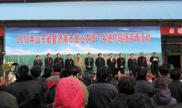 2010年3月23日上午,2010年“山東省暨濟(jì)南市放心農(nóng)資下鄉(xiāng)咨詢活動(dòng)”在濟(jì)陽曲提鎮(zhèn)菜市場(chǎng)舉行。本次活動(dòng)由山東省農(nóng)業(yè)廳、濟(jì)南市政府和濟(jì)陽市政府聯(lián)合舉辦。會(huì)場(chǎng)選在鎮(zhèn)政府菜市場(chǎng)當(dāng)中,人流如織,賣菜的農(nóng)民順便參與到活動(dòng)之中。濱農(nóng)是山東農(nóng)藥企業(yè)唯一的代表,公司帶去了適合當(dāng)?shù)厥褂玫某輨、殺蟲殺菌劑產(chǎn)品和宣傳材料;顒(dòng)中廣大農(nóng)民對(duì)我們的產(chǎn)品十分感興趣,我們?cè)敿?xì)解答了農(nóng)民朋友在使用中遇到的諸多實(shí)際問題。本次活動(dòng)是去年我們所參加的省政府兩次活動(dòng)的繼續(xù),對(duì)提升濱農(nóng)品牌的知名度十分有意義。