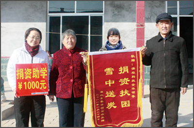 2011年1月24日,人力資源部主任戚哲芬代表公司為東寨子村石承承同學(xué)送去助學(xué)金1000元,并向其家人致以節(jié)日的問候。石承承及家人為感謝公司多年來的照顧,將一面“捐資扶困,雪中送炭”的錦旗送到戚主任手中。石承承表示今后一定好好學(xué)習(xí),不辜負(fù)大家的期望,學(xué)有所成后,志愿投身到公司的發(fā)展建設(shè)中,為濱農(nóng)盡一份自己的綿薄之力。